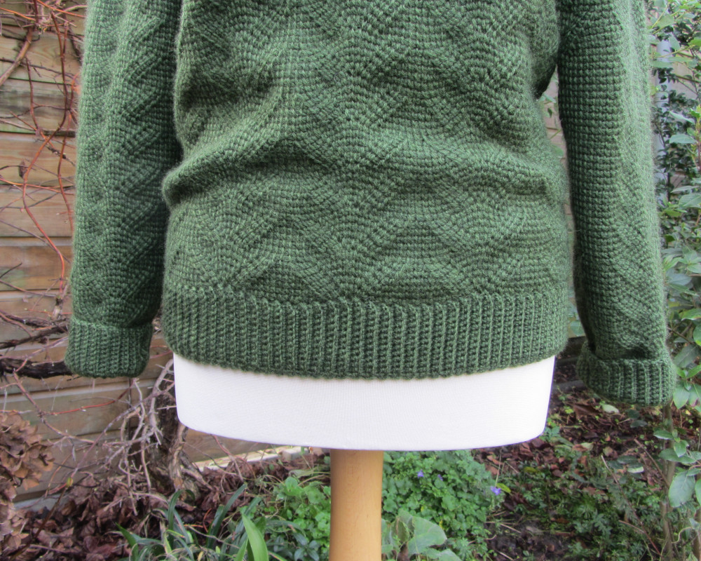 De panden en de mouwen zijn daarna op de boorden gehaakt.