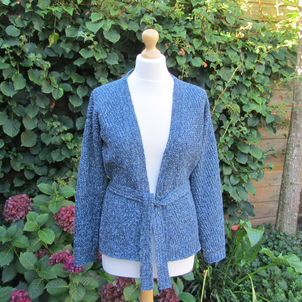 Dit tunisch gehaakt vest is wat langer en wordt met een ceintuur getailleerd. Het is gehaakt met een katoenen garen, met tunische haaknaald 4,5 (aanbevolen haaknaald voor gewoon haken is 2,5-3). Voor de boorden is naald 4 gebruikt. Er zijn 14 bollen van 50 gram gebruikt (ong. 125 m per bol) voor maat S.
